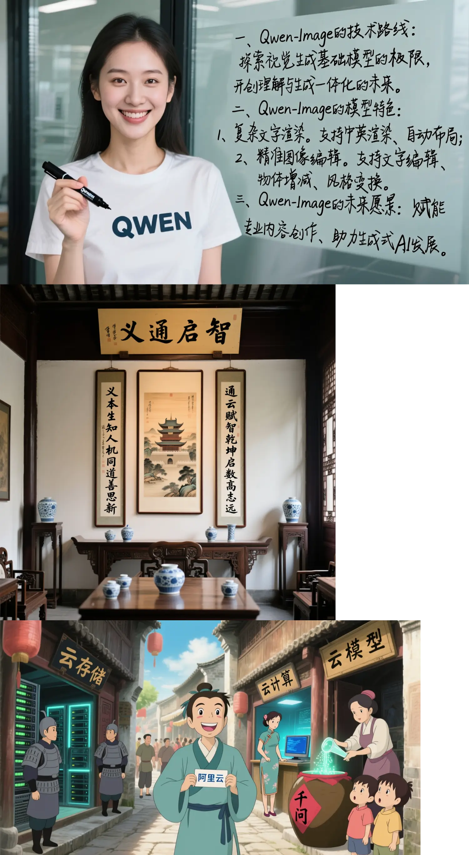 : Qwen-Image在文本渲染方面表现尤为出色,特别是在中文文本渲染上,大幅领先现有的最