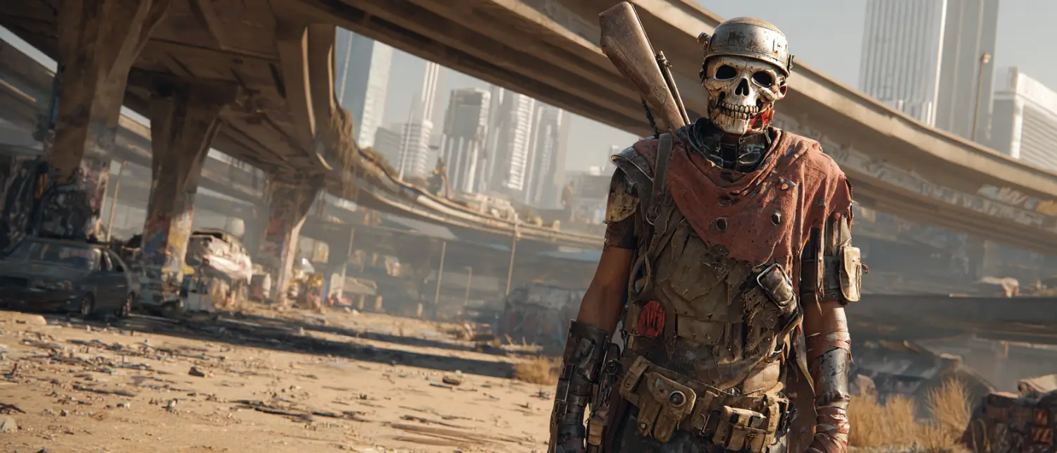 外观:骷髅面罩、破甲与铁片绑缚,表情被抹消。