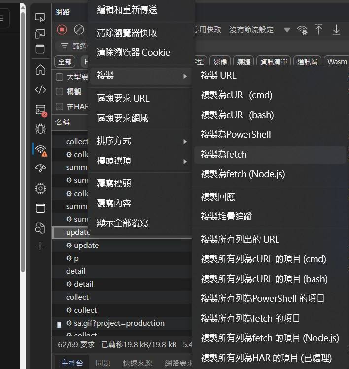 整段fetch复制起来贴回下面的主控台(浏览器应该会叫你先打允许贴上之类的文字)