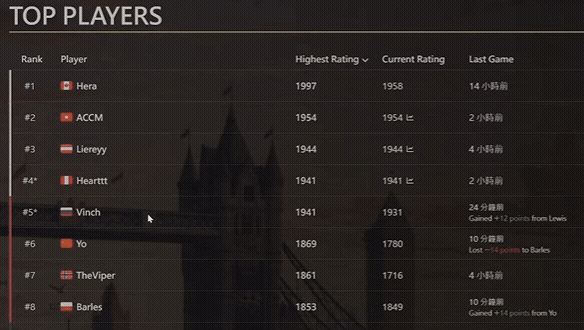 Vinch 对 Hera 二连胜 +42 一度以为稳了 (也是Hera第二次挑战2k失败)