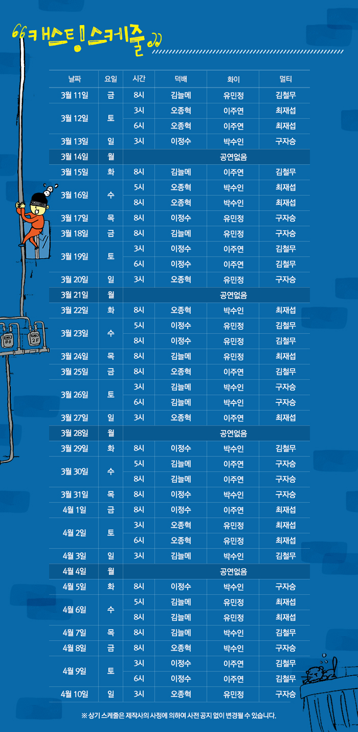 3/1版 预定出演日程表