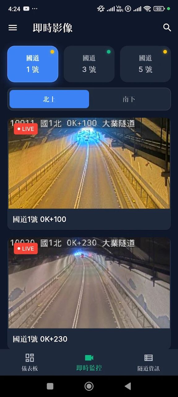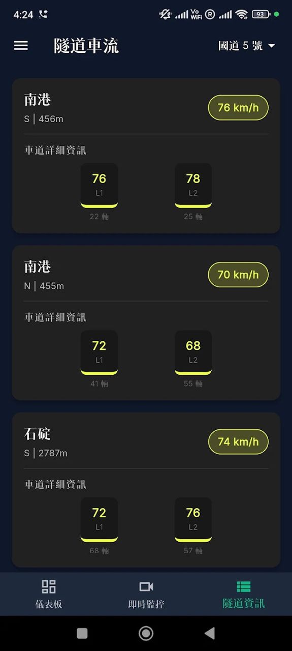 即时隧道路况:掌握国道 1、3、5 号所有隧道的即时车速与行驶状态