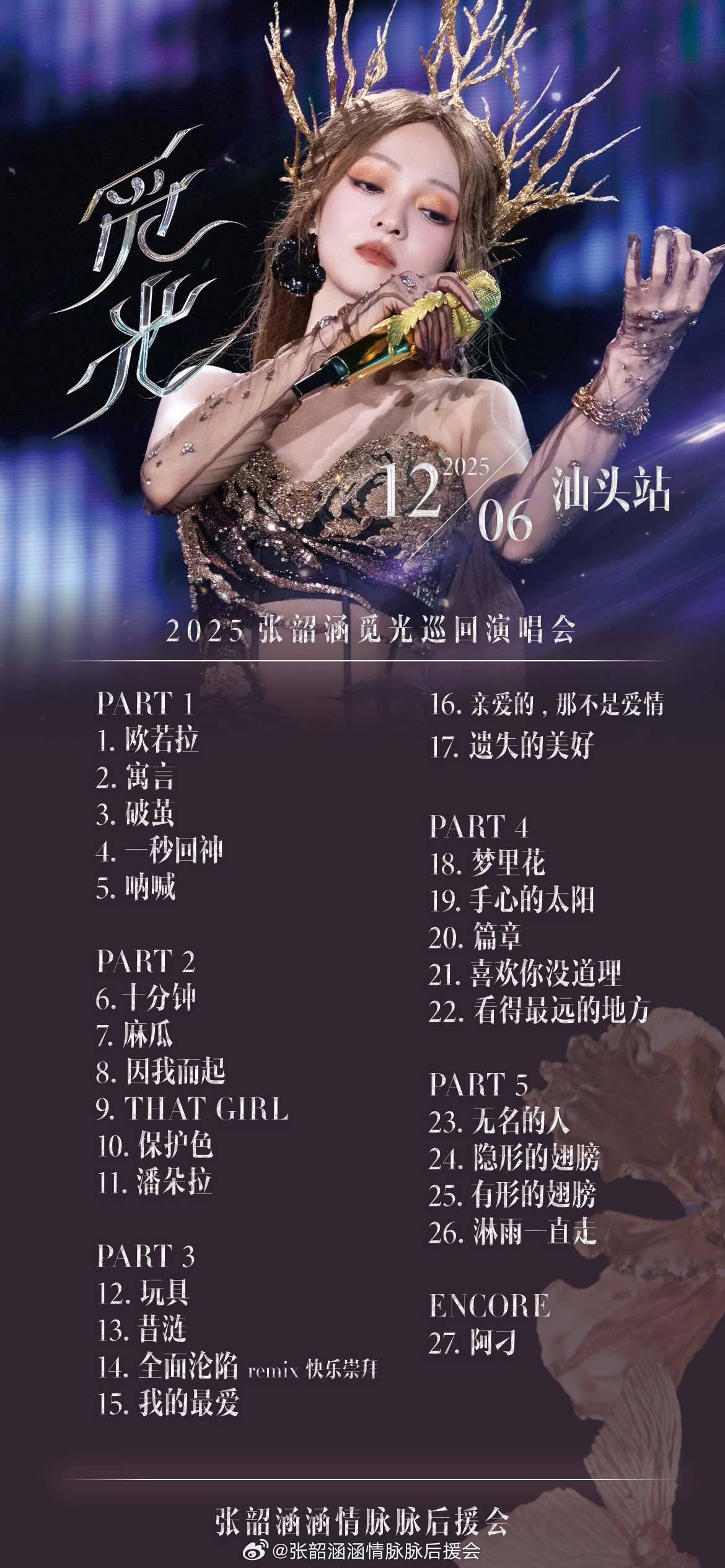 标题[情报] 2025年觅光世界巡回演唱会汕头场歌单