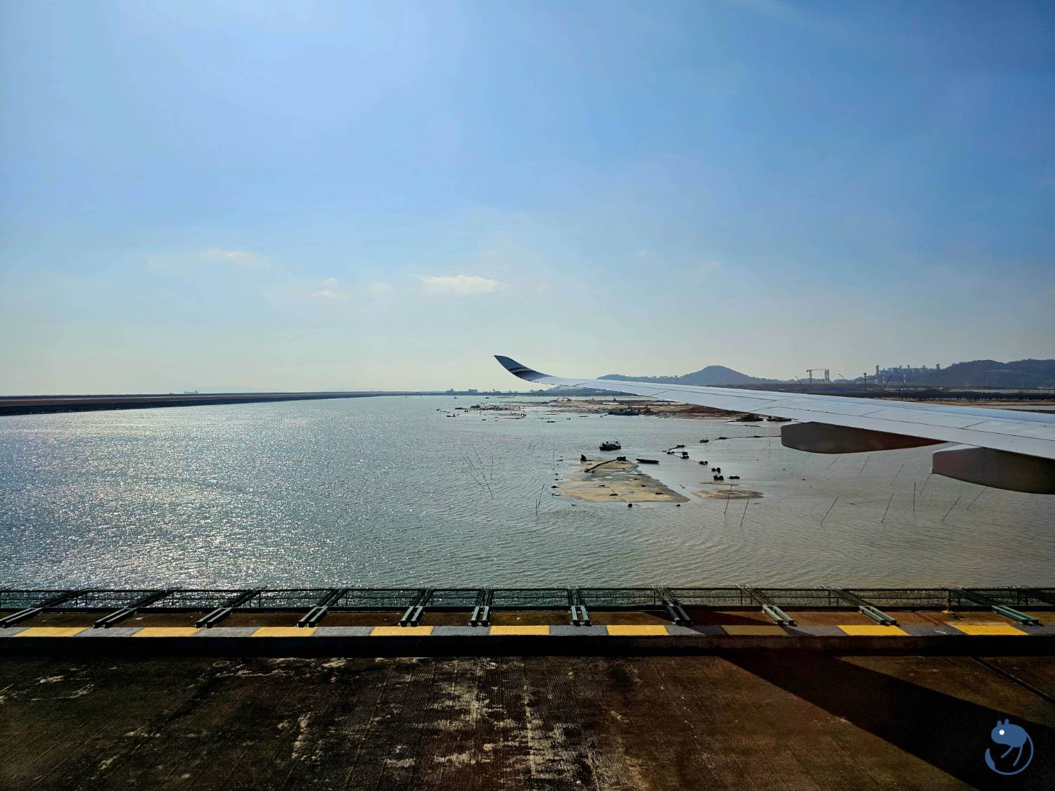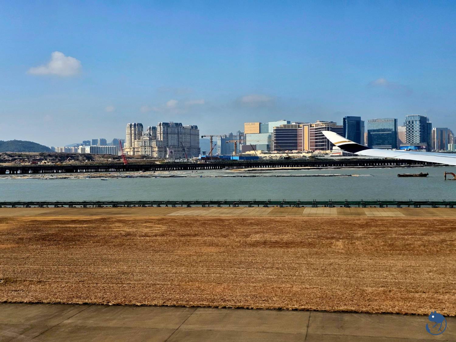 由於澳门机场的跑道是建在人工岛上,所以跑道与航厦间透过两条海上连接道相连。