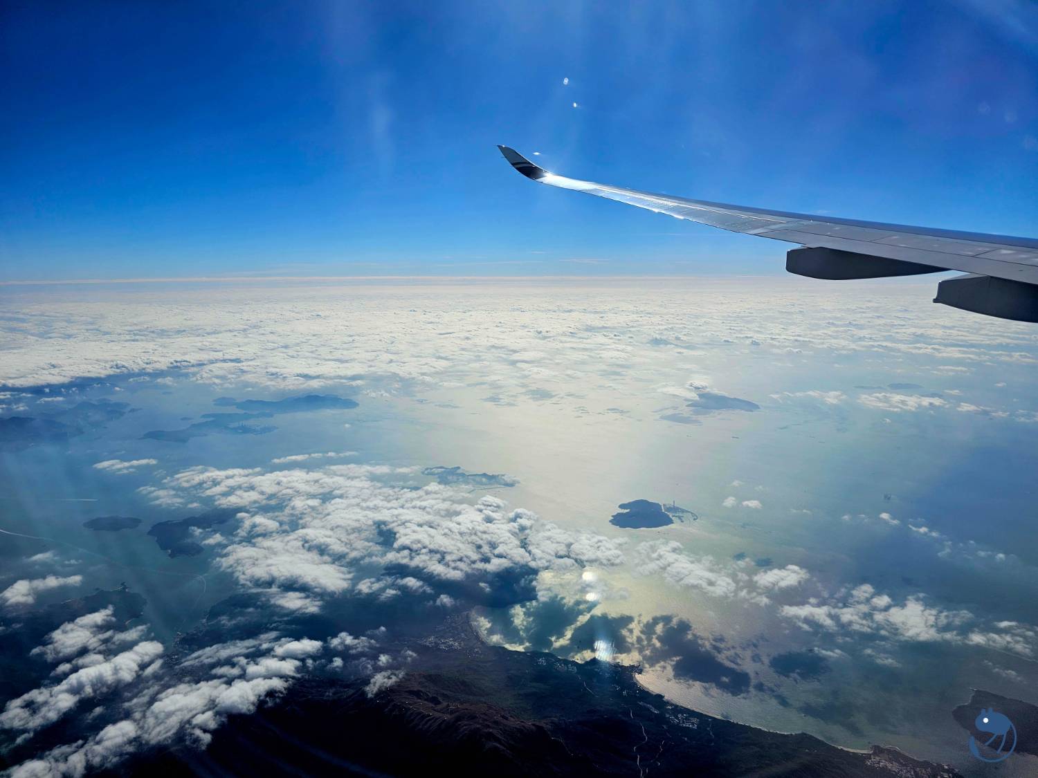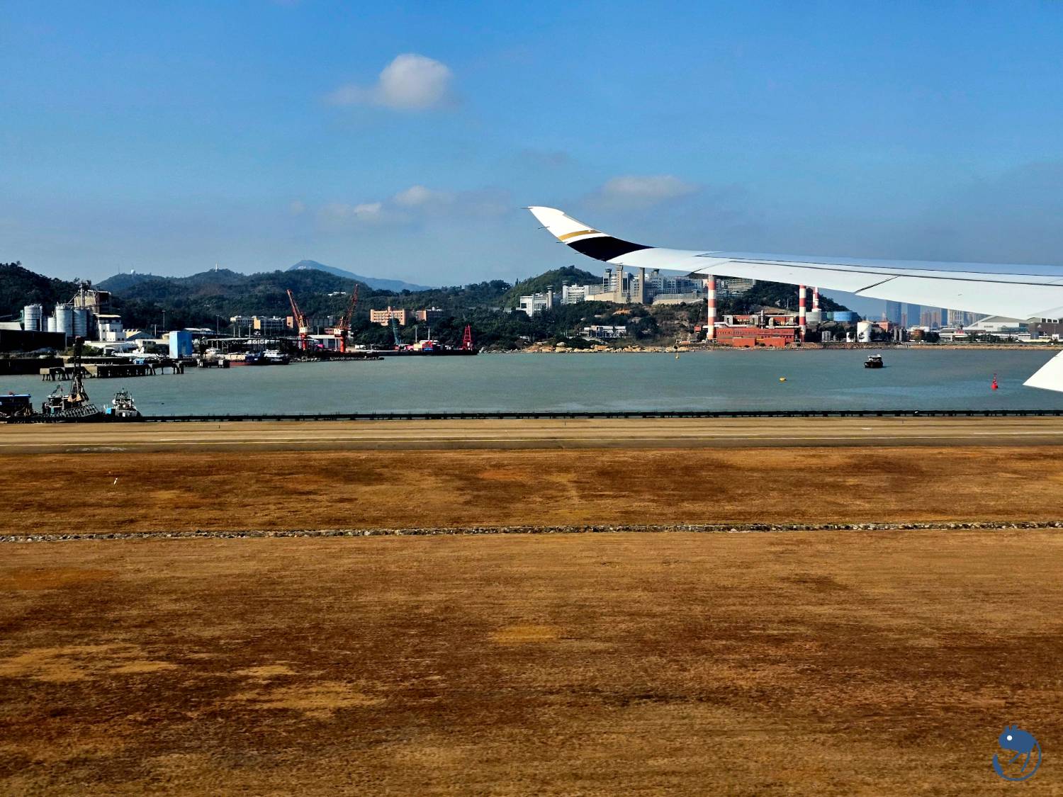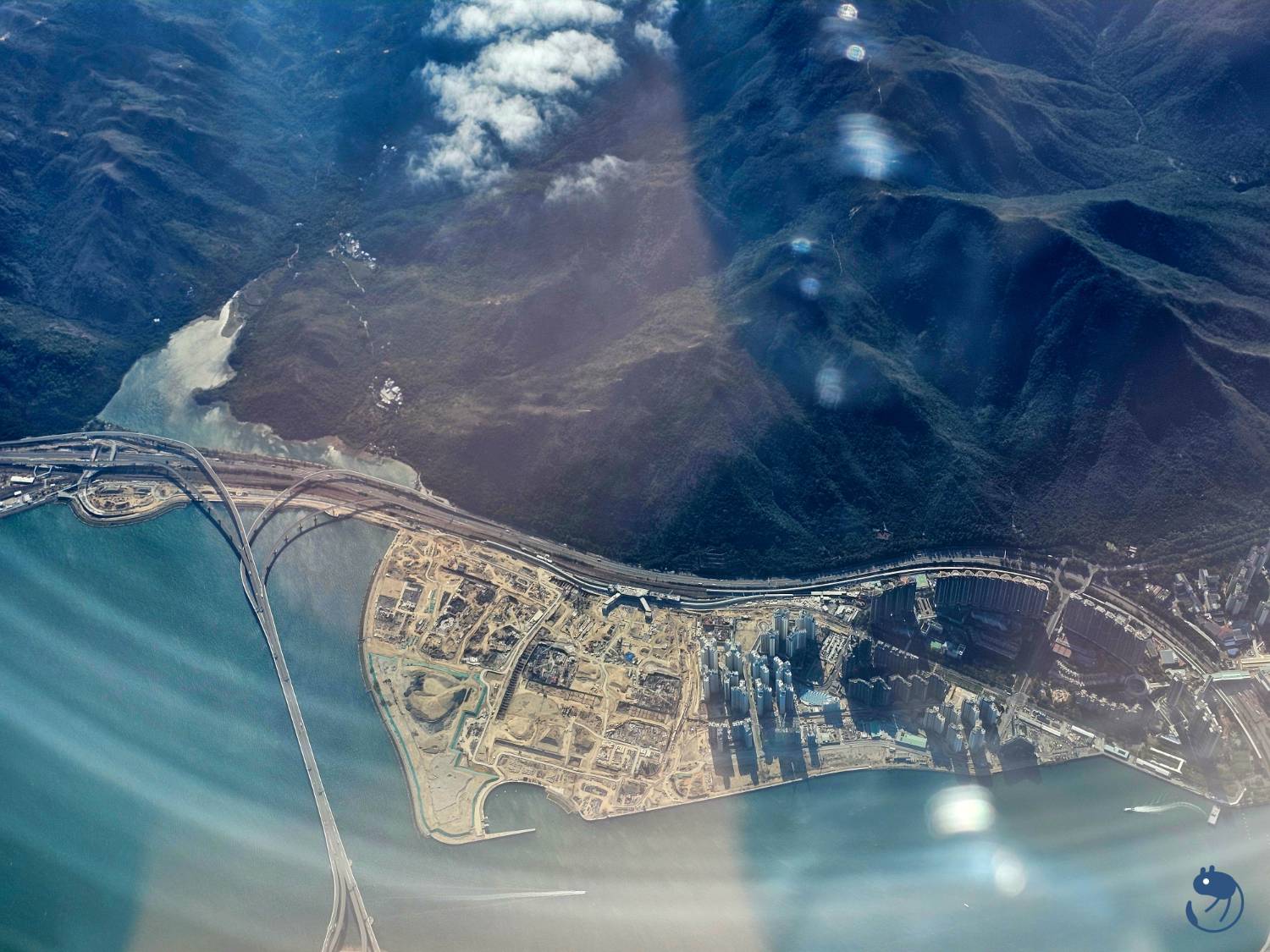 吃完饭休息一下,很快就开始降落高度。飞机在九龙半岛上空,刚好可以看到香港岛的西