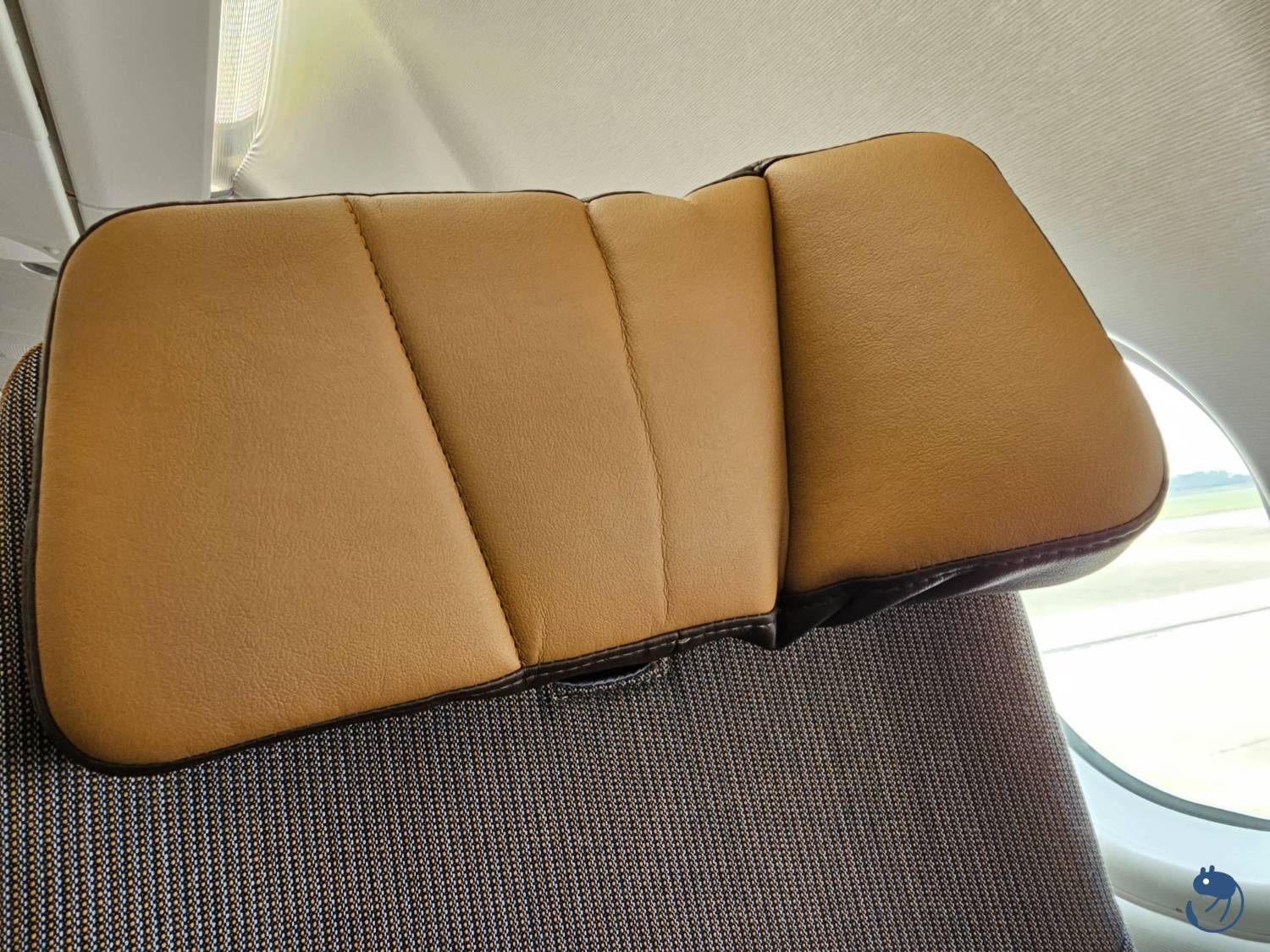 从商务到经济都有的六向可调节式皮革头枕,头枕可以内折与上下调高度,睡觉也能很舒