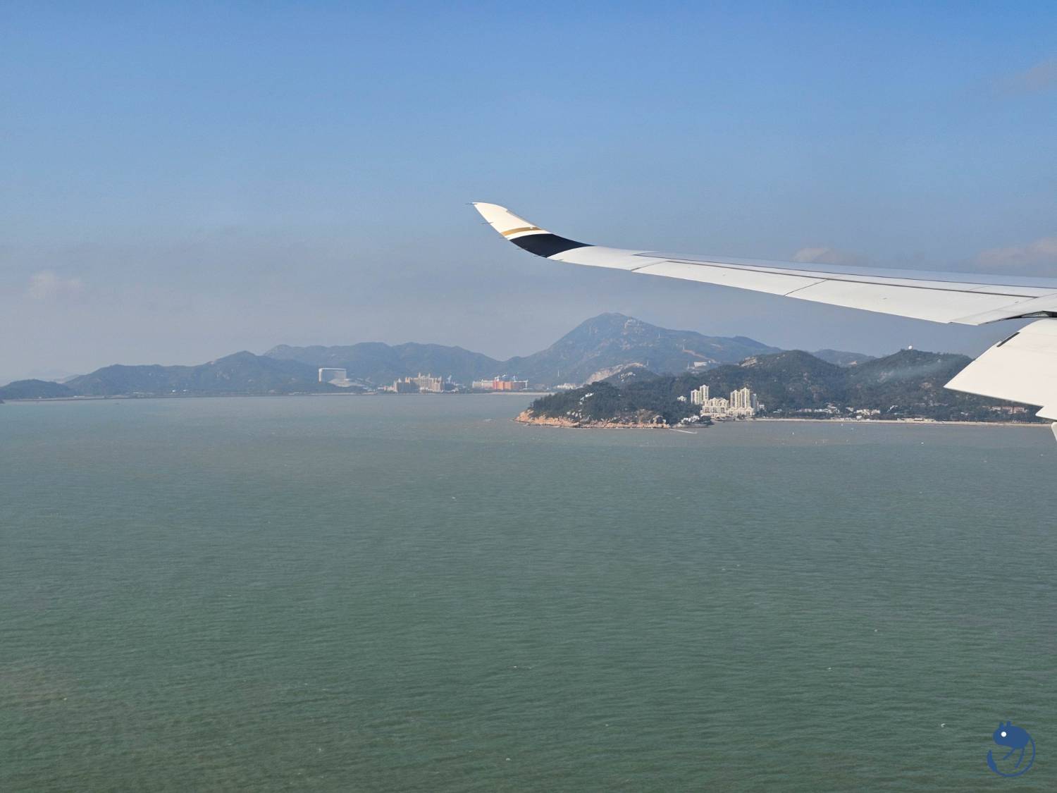 在澳门东南侧的万山群岛旁来一个大回旋进场。