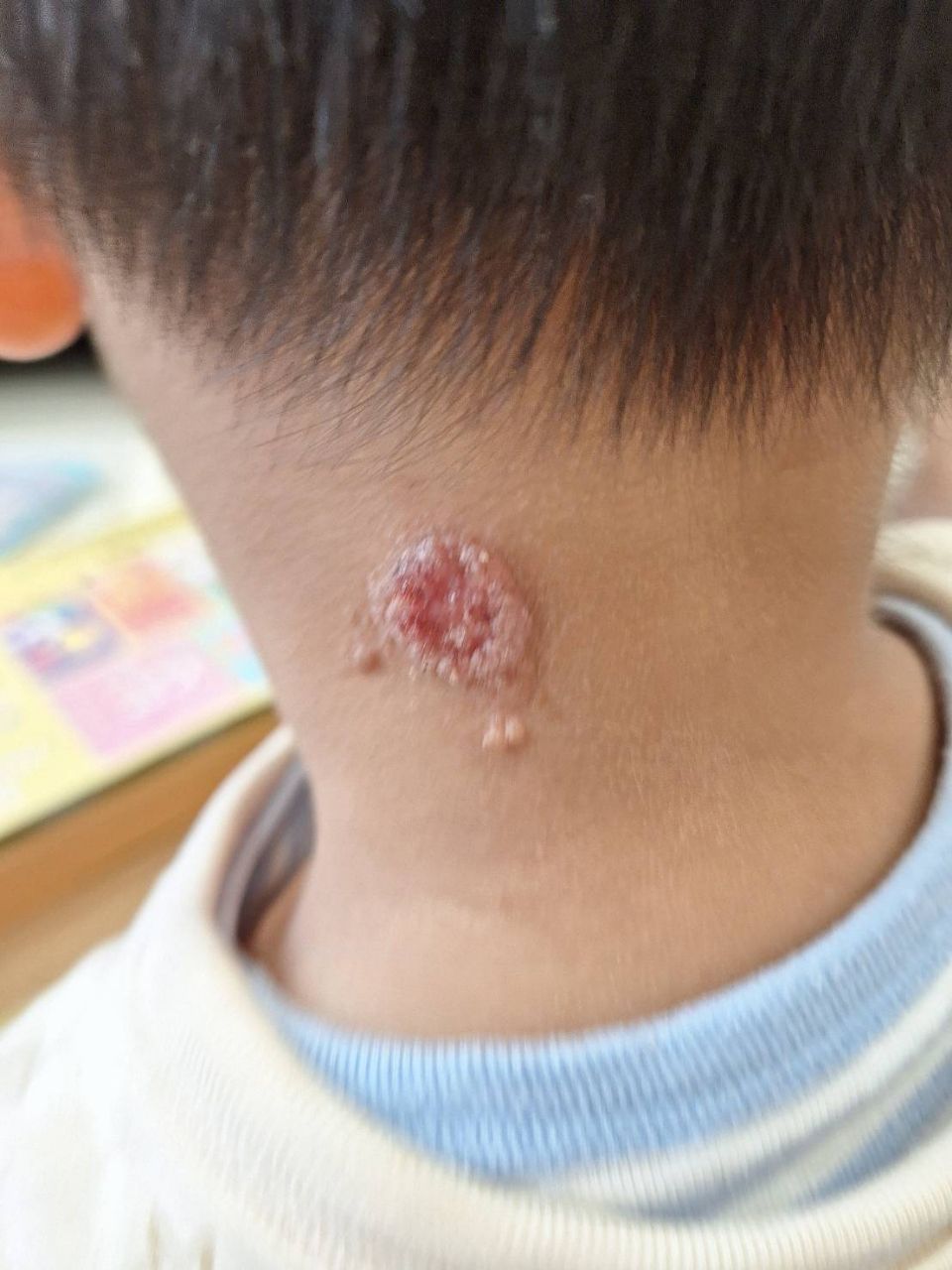 不过随着年纪增长,小孩频繁去抓、抠那块皮肤(小孩说会痒),导致一直破皮,长久下