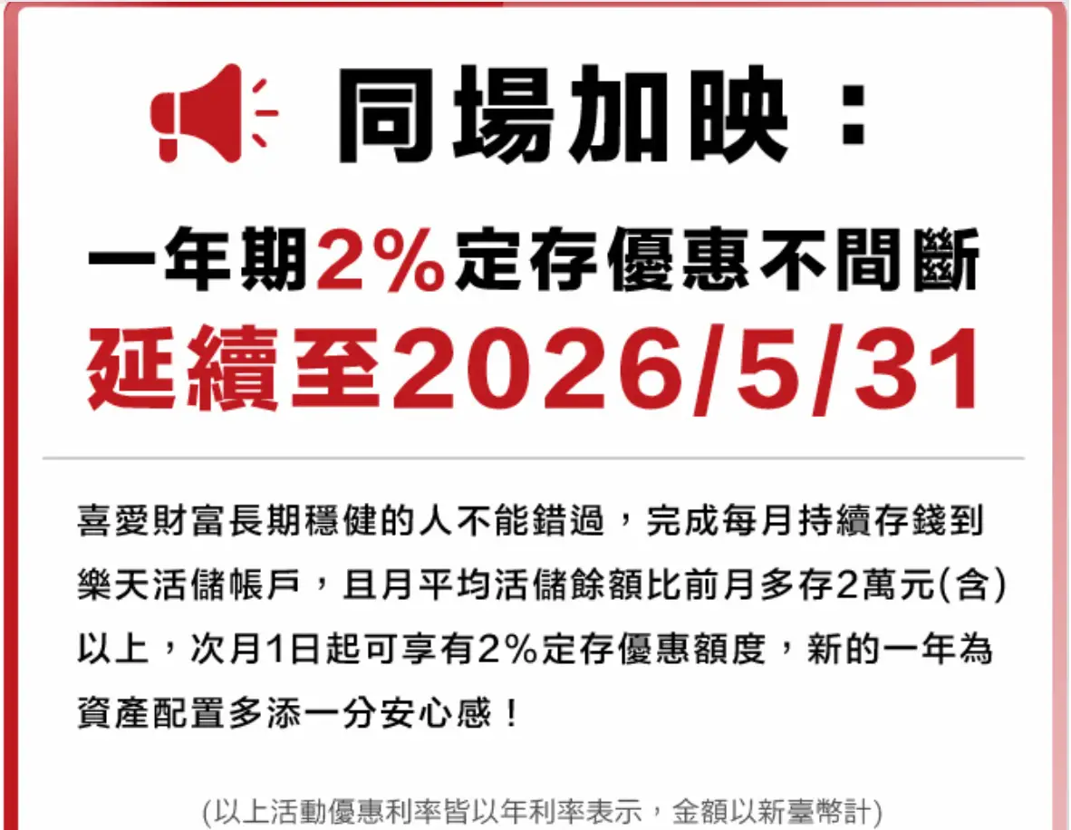 标题[情报] 乐天活存优利1.5%无上限任务延到4/30 计息到5/31