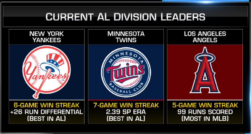 4. 美联分区三龙头 : 西霸五连胜天使得分99排MLB第一