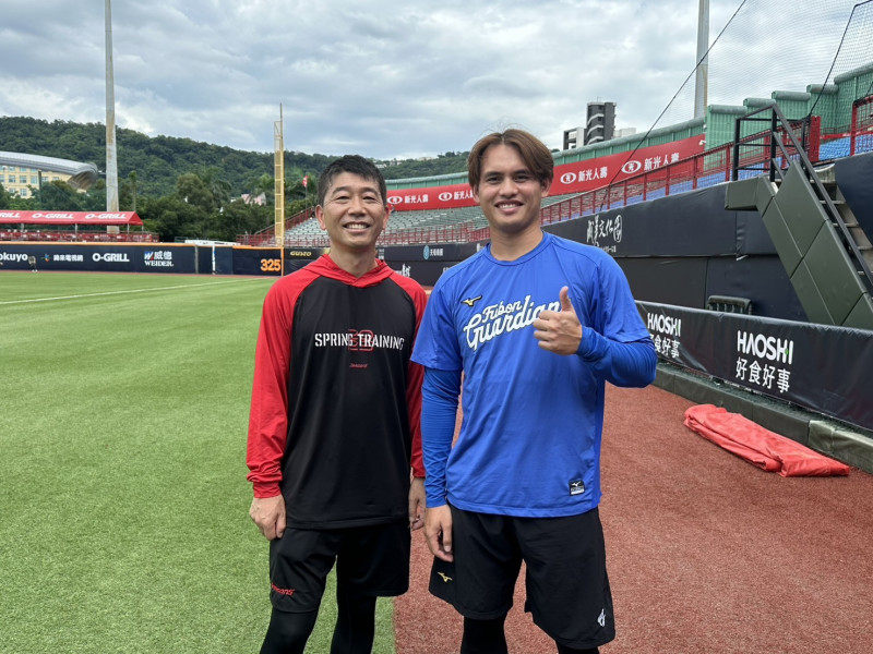 来台客座,近期两人在龙队一军指导,正好遇到效力富邦悍将的前子弟兵张奕。