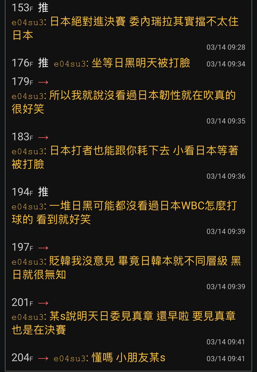 570F:→ Hakase5566: 楼上不是应该先跟原po吵一架吗 是原po先说WBC这种短 03/15 22:36
