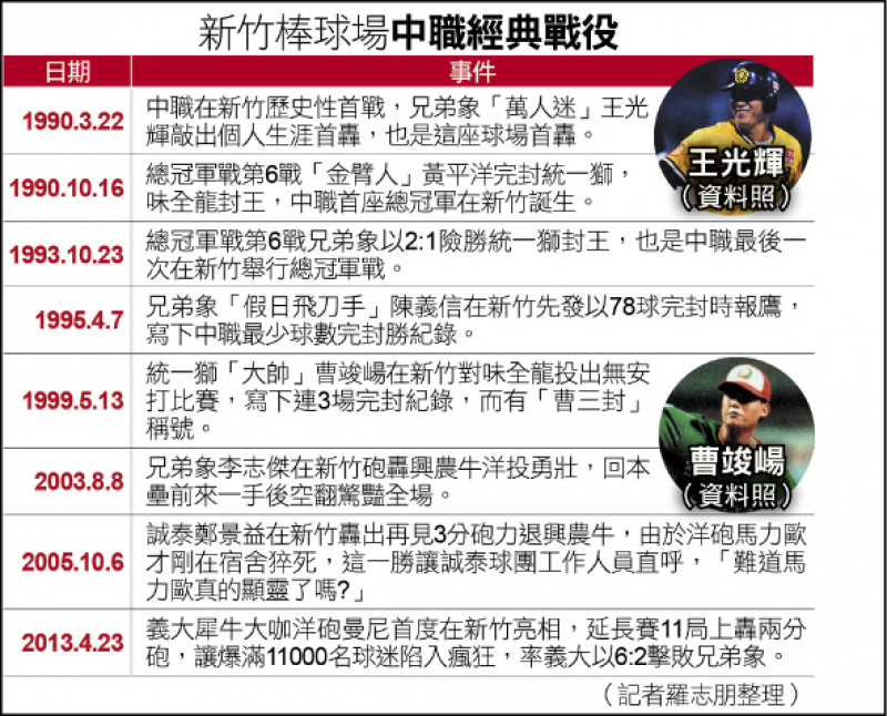 中职前次在新竹球场进行例行赛已是2016年9月13日,当时中信兄弟以10:7击败义大