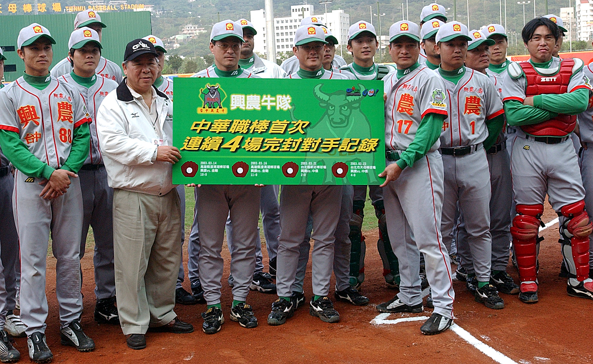 兴农牛队在2003年3月14到23日连续4场完封对手,当时还获得联盟表扬。报系资料照