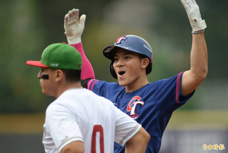 陈圣平关键两支安打,打下3分打点。(记者林正堃摄)