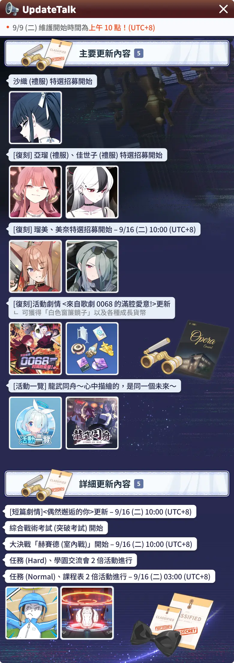 9月9日(二)维护後~9月16日(二)上午9点59分 活动剧情