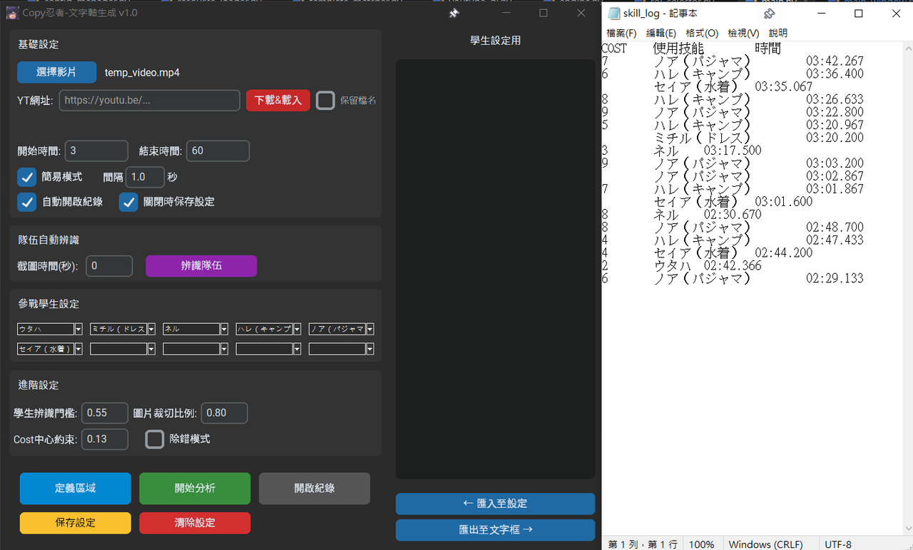 辨识队伍-如果该影片有编成画面的话,可以框选学生名称的部分让它辨识名字,辨识不