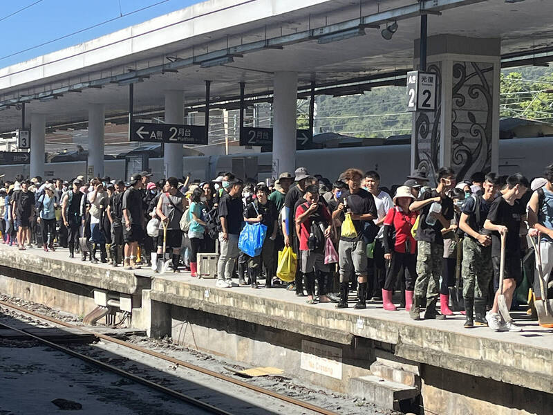 慈济基金会指出,昨有逾5000位「铲子超人」搭乘台铁参与慈济清扫,包括慈济国内、海