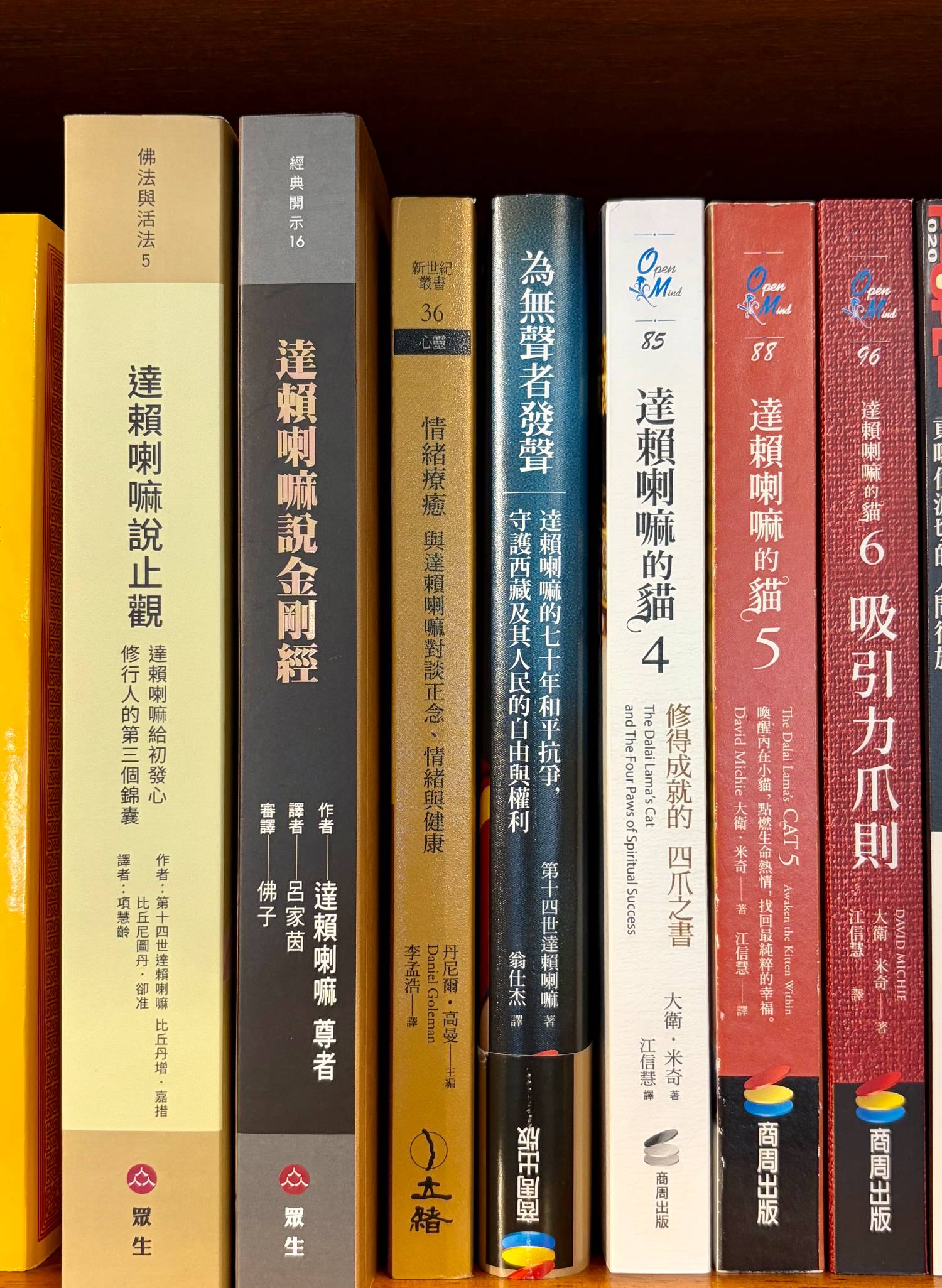 今天我在诚品,看到架上几本达赖喇嘛尊者相关的书,我们台湾比较有福报,还能阅读到