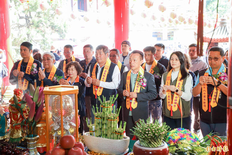 嘉义县长翁章梁(右3)等上香祈福。(记者林宜樟摄)