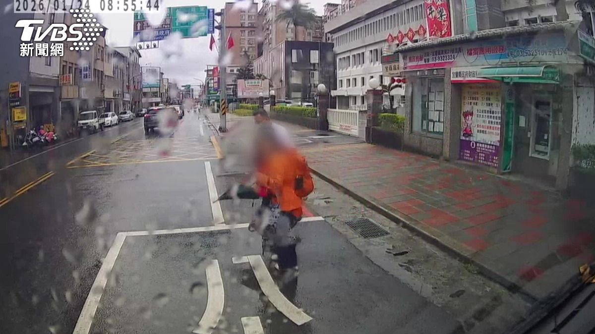 客运司机暖心下车护送长者至医院。(图/TVBS)