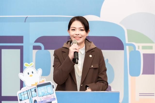 她强调交通是城市血脉,透过系统性的结构改革,目标在民国117年达成市区公车全面电