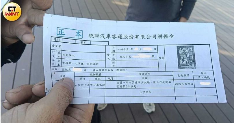 被统联客运「惩戒解雇」的驾驶长怒批公司不给自己说明的机会,只好诉诸救济希望争个