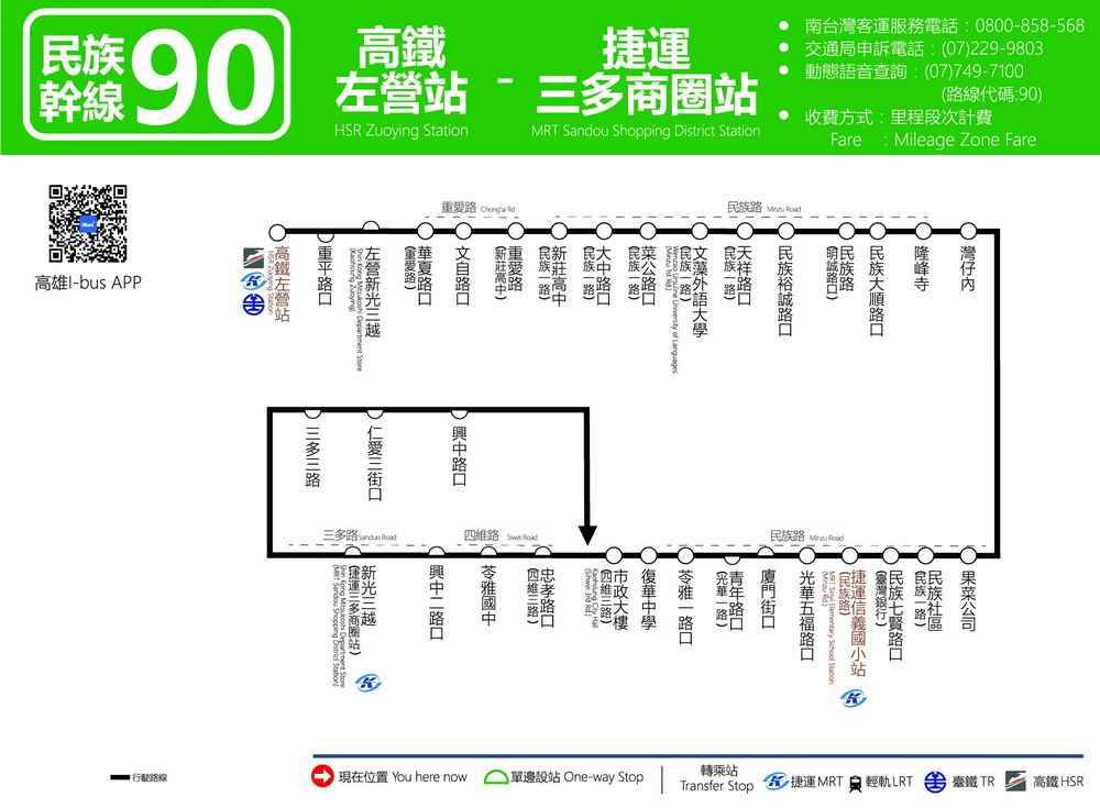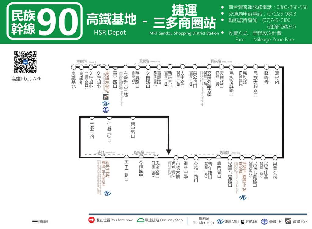 高雄市公车 90 民族干线 高铁基地-捷运三多商圈站