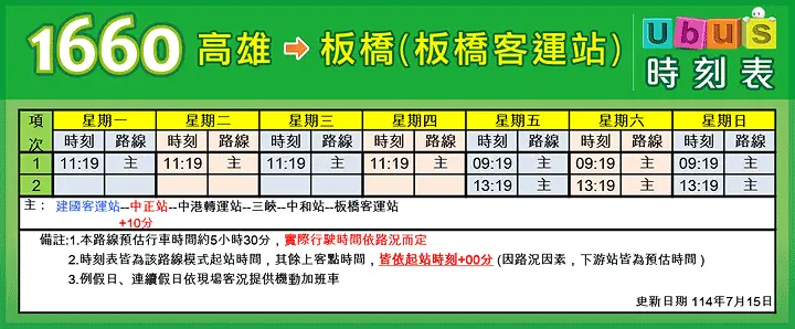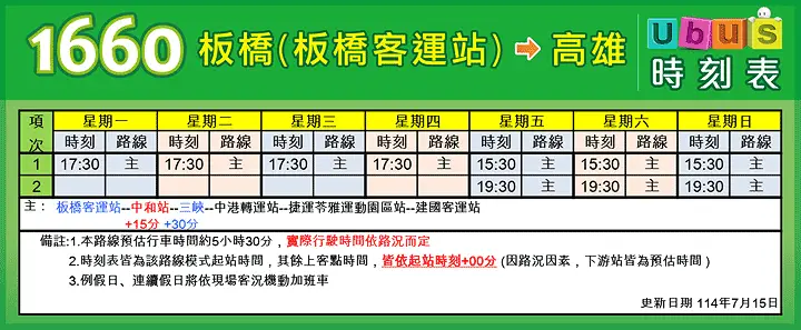 国道客运 1660 板桥-高雄