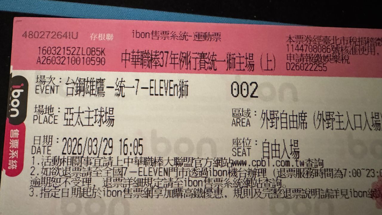 ※ 文章网址: https://webptt.com/cn.aspx?n=bbs/CPBL_ticket/M.1774703529.A.C34.html
