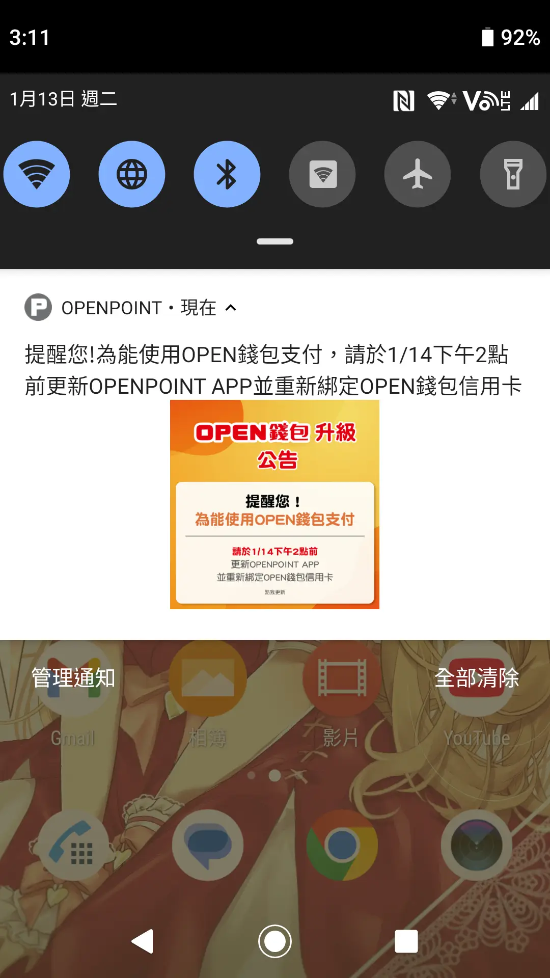 就在刚刚收到open钱包的更新简讯,如下截图,这应该是诈骗简讯吧!?请问也有人收到