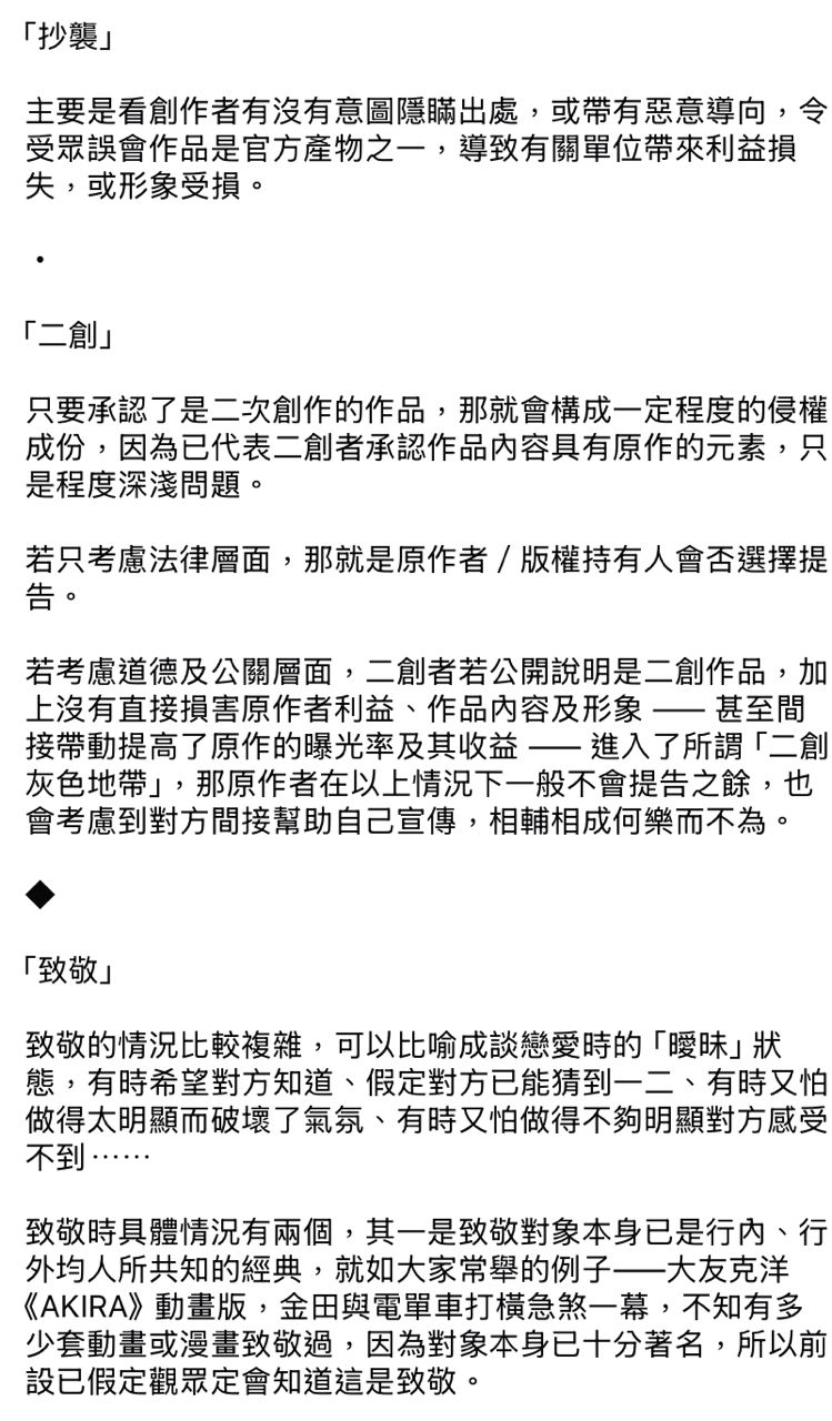 31F:推 mionkuon: 致敬:原作者知情、允诺;抄袭:原作者不知道 12/06 00:02