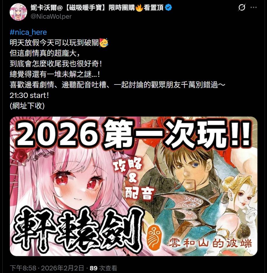 标题[Vtub] 妮卡沃尔 游戏 轩辕剑3 配音实况 目标通关!26年前的游戏到