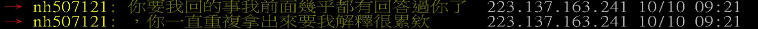 331F:→ nh507121: 你也知道重复喔,你先重复问同样的问题123.193.194.139 10/12 11:52