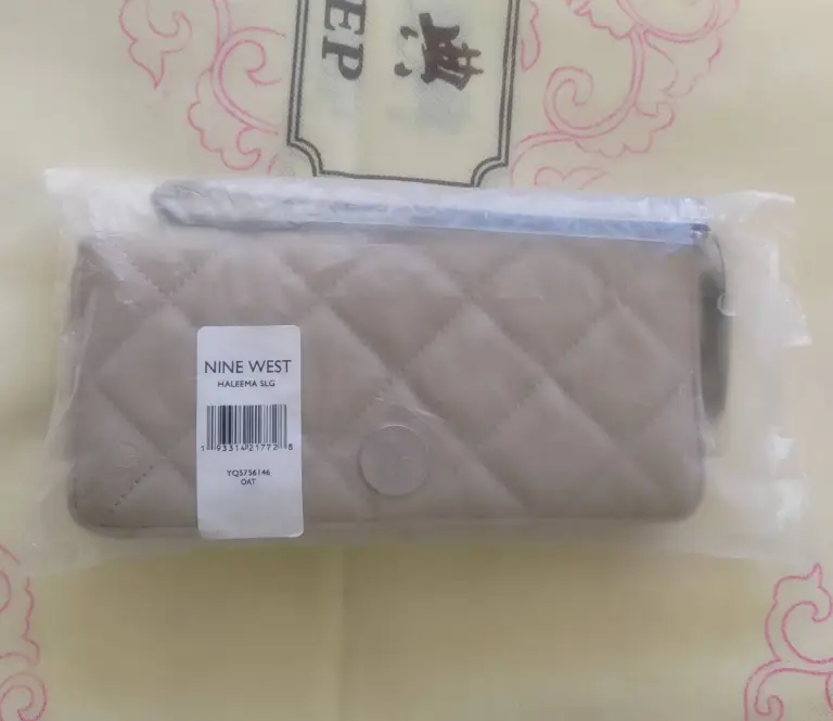 ***为了提供您最佳的浏览体验-建议使用电脑浏览*** *下列商品只在PTT上贩售--并无在其他任何社群贩售* 商品:NINE WESTHALEEMA 菱格纹手挂式长夹-浅奶茶 售价:1600 图片: