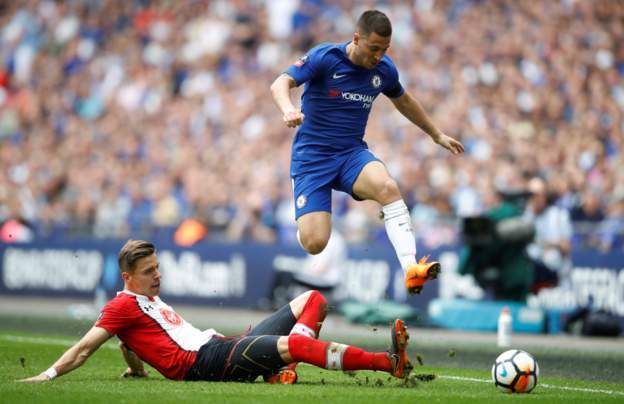 足总盃决赛,哈扎德将和曼联阵中的比利时国家队友卢卡库、费莱尼兵戎相见。