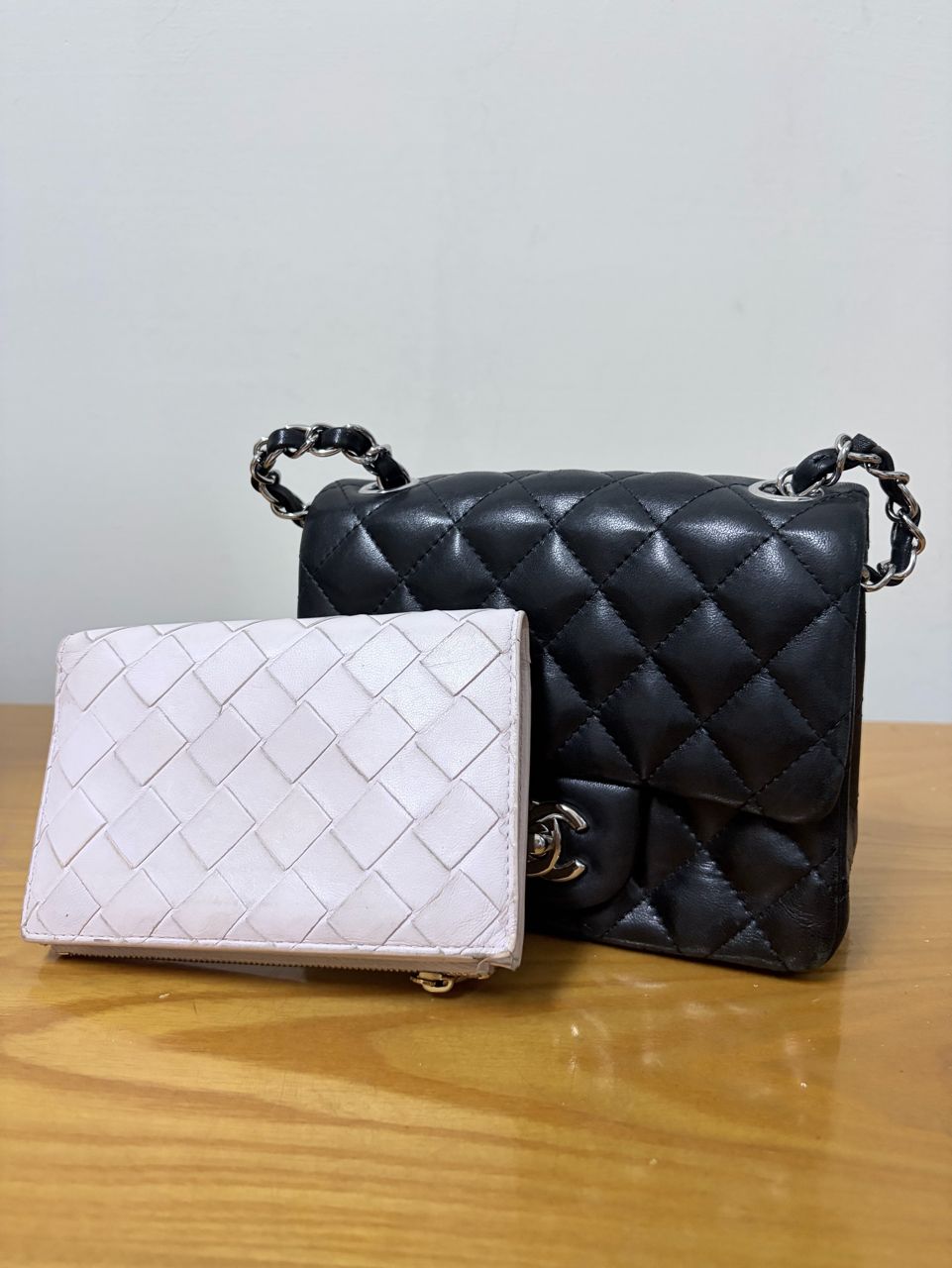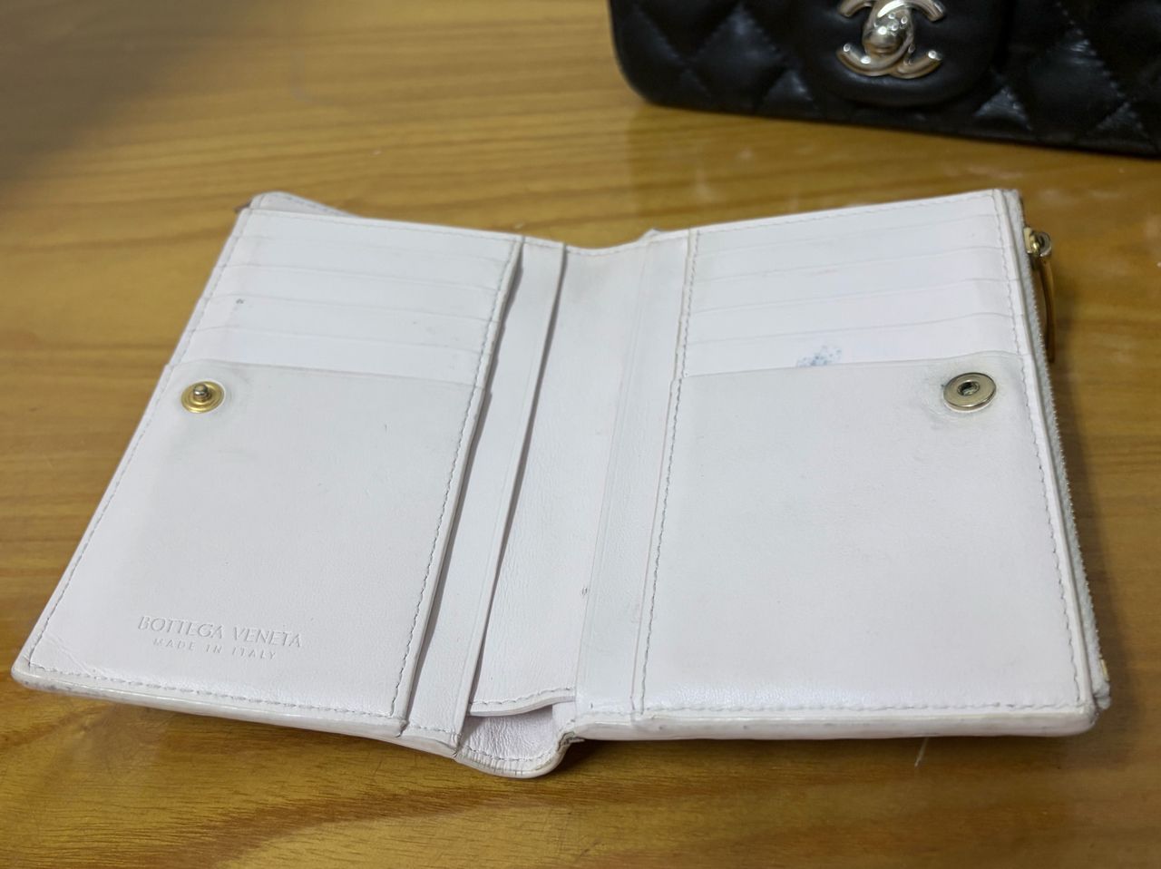 BV中夹是2023於华泰名品城购入,所以确定是正版;小包是别人送的,疑似仿包。因为两