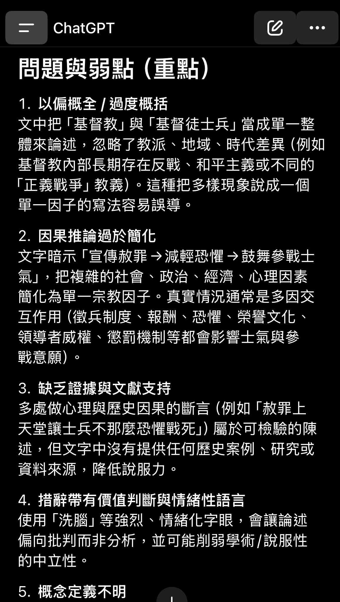 : (一)忽略现实复杂性: 基督徒士兵参战的真实动机是多元的,可能包括爱国心、保护
