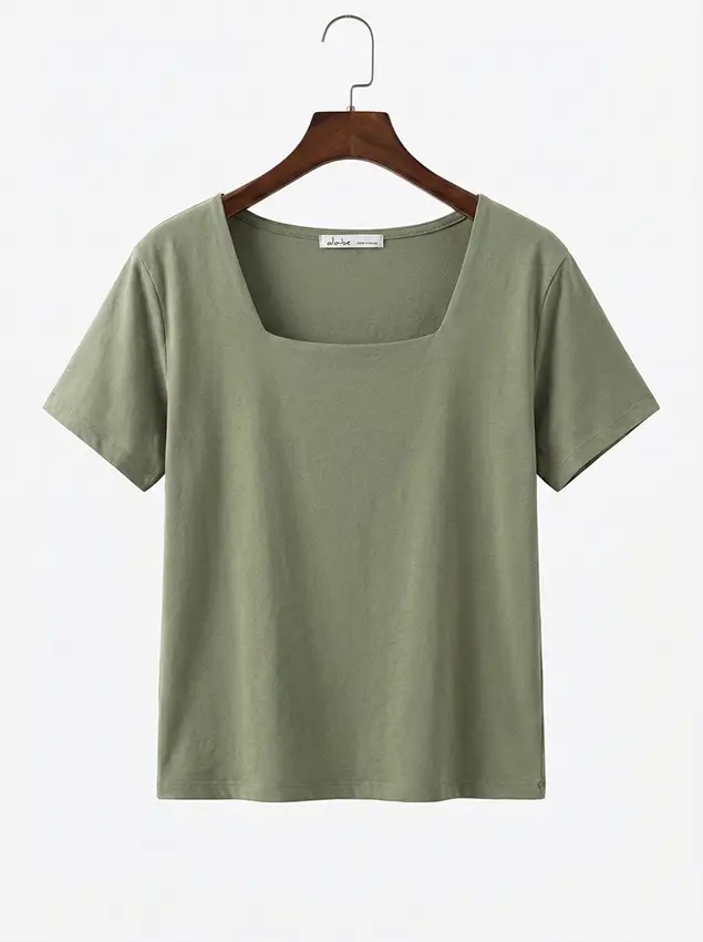 正韩 方领短袖上衣