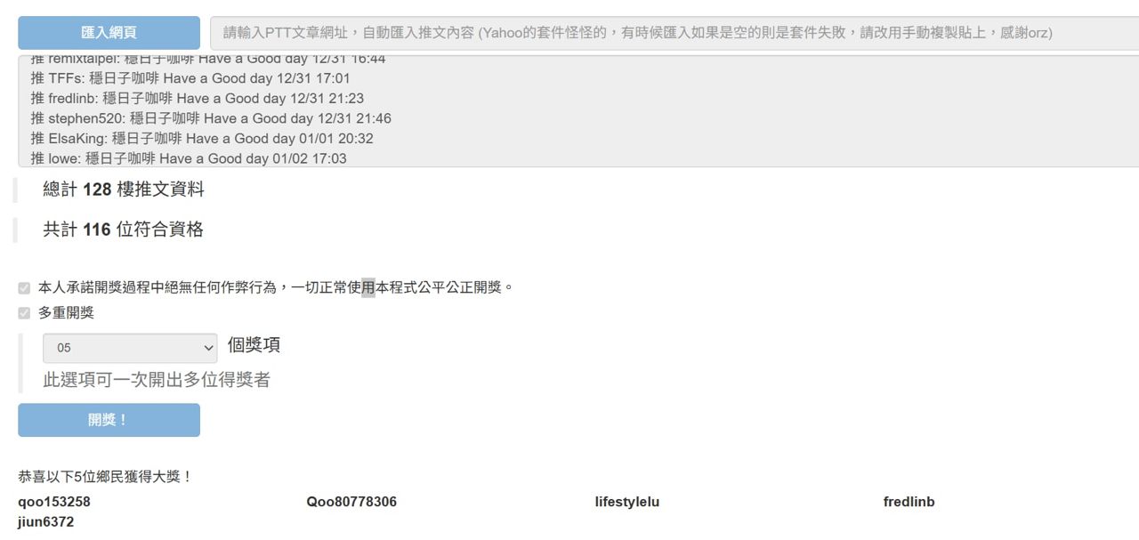 已经抽完罗!恭喜一下五位人员,後续会进行详细联络!