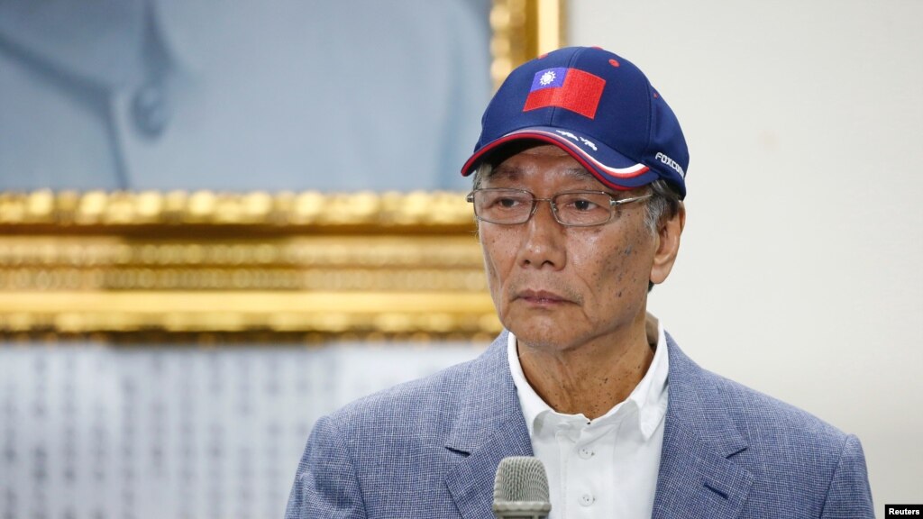 台湾鸿海集团董事长郭台铭头戴台湾国旗帽2019年4月17日宣布参加2020台湾总统竞选。