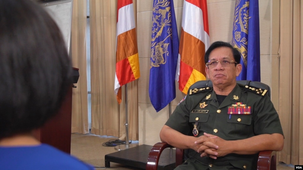 柬埔寨国防部发言人春速杰将军在总理府接受美国之音的专访。(2019年8月22日)