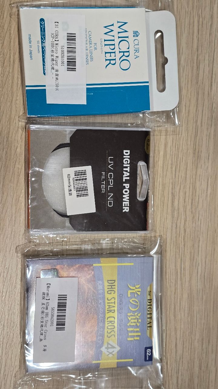 盒单配件齐全,含原厂前後盖、遮光罩、镜头袋,赠送UV 保护镜,DHG 星芒镜,清洁组