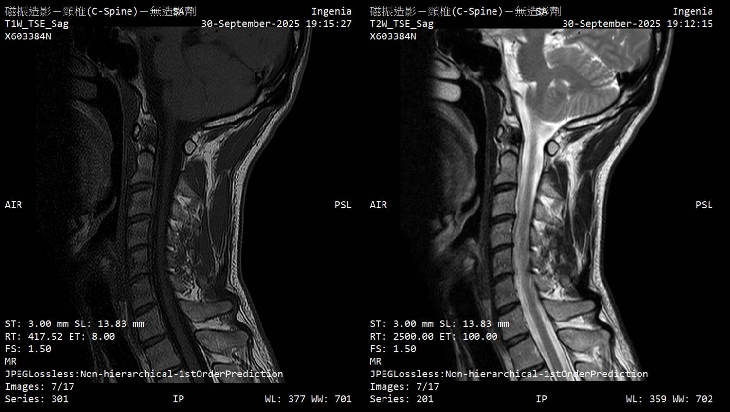 标题[请益] 疑似颈椎脊髓压迫(附MRI)