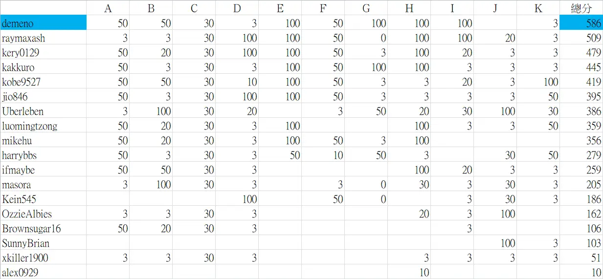 亚洲赛事区 冠军:demeno ,独得2860 Ptt币。