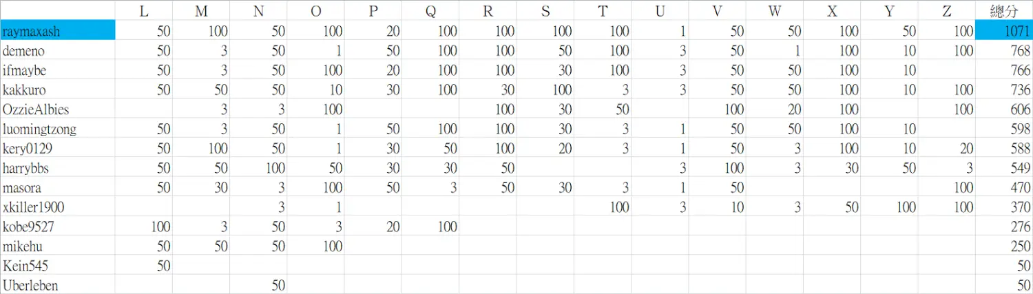 欧美赛事区 冠军:raymaxash,独得3900 Ptt币。