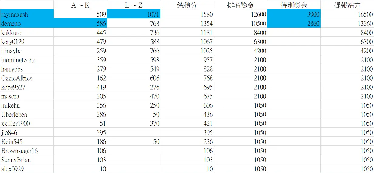 活动奖金将於提报站方後由站方发放,请耐心等候: