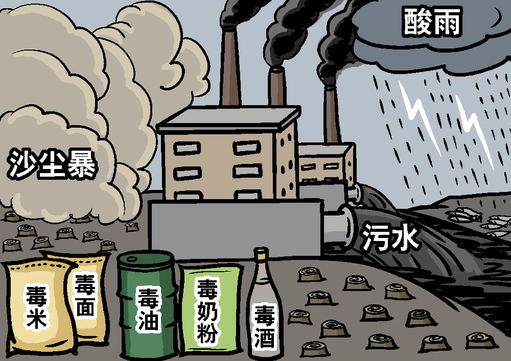 人用激素和抗菌素喂螃蟹、蛇、乌龟,用工业酒精兑假酒,用工业油抛光大米,用工业用
