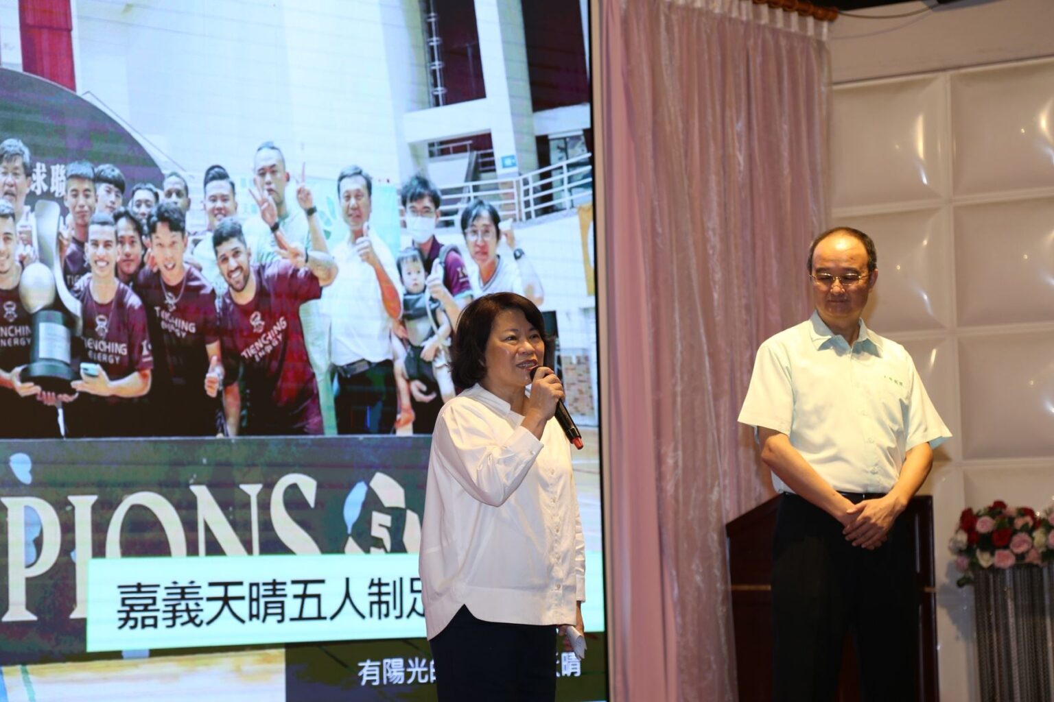 嘉市天晴获台企银五人制足球联赛冠军庆功宴 黄敏惠市长到场祝贺。(图:嘉义市教育