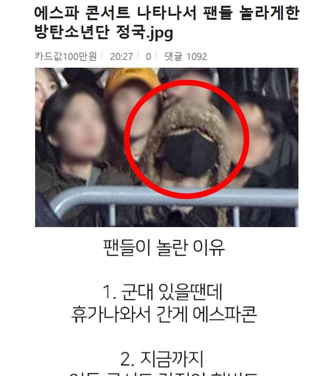 田柾国当兵休假期间跑去看aespa演唱会。(图/翻摄自theqoo)
